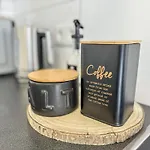 - ❓Czy w tym apartamencie znajduje się kuchnia do użytku gości?Tak, ten apartament wyposażony jest w pełnowymiarową kuchnię i oferuje czajnik elektryczny, lodówkę i piekarnik.